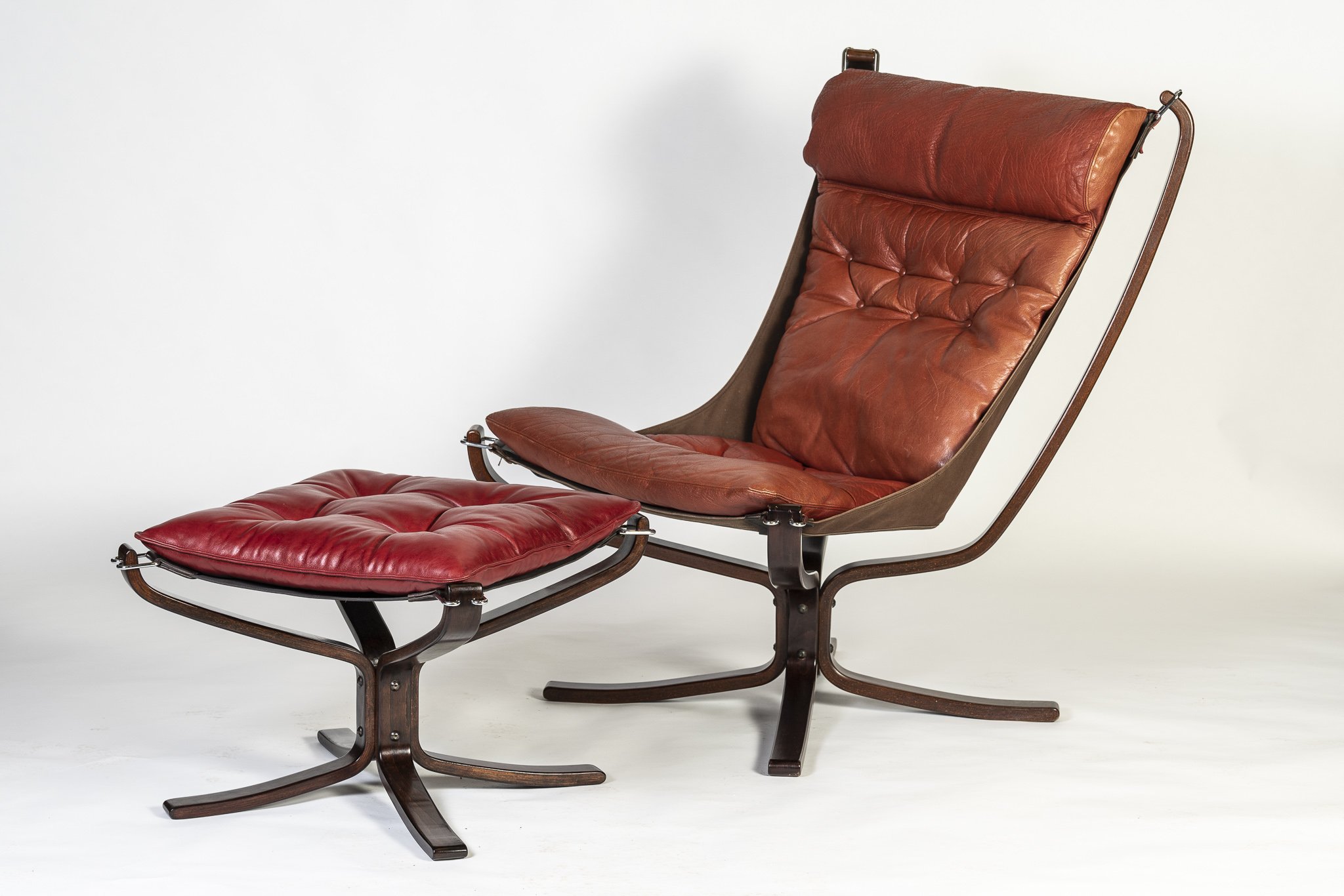 Designed by Sigurd Ressell and produced by Vatne Mobler in the 1970's. The Falcon Chair and stool has since become an iconic piece of design history.